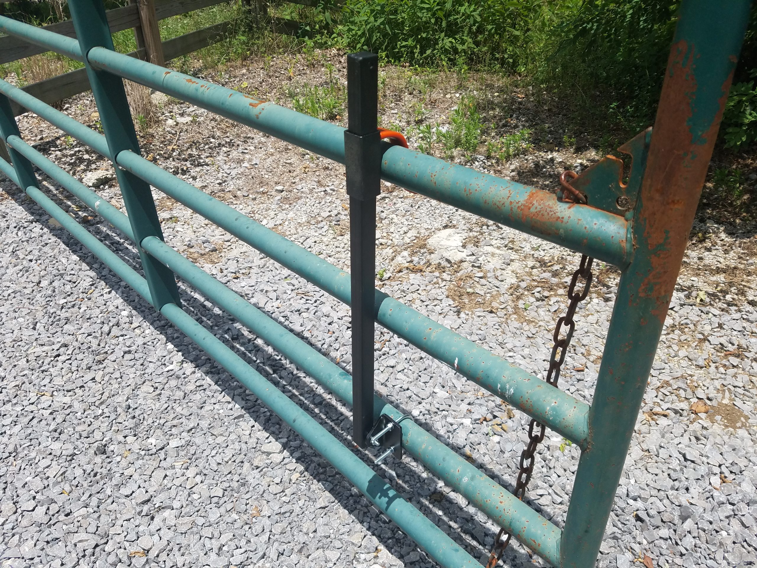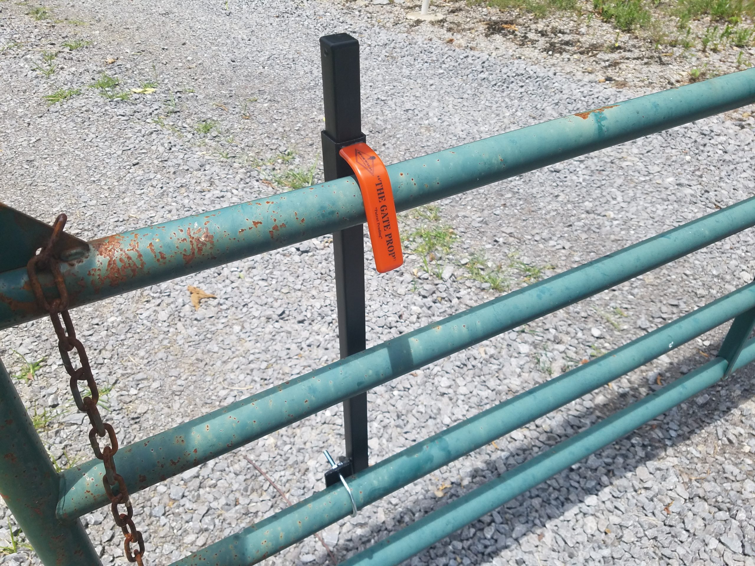 Do you have a gate that wants to swing closed, or tired of the wind blowing the gate closed on you? The Gate Prop is a handy device designed to fit any gate and keep it from closing on you while driving through with your truck, tractor, driving cattle, etc. It is constructed from steel square tubing and has a heavy black powder coating. It comes with a zinc coated U-bolt that will fit up to a 2″ pipe ( 2 and 3/8″ inside measurement of U-bolt). Simple to use; just lift the hanger off the gate tube, drop the prop, and sling the gate open! The Gate Prop can also be used on wooden gates by using wood screws through the mounting bracket holes instead of using the supplied U-bolt, this same feature can be used on panel/fence style tube framed gates – screw two pieces of pressure treated lumber together with the panel in between the pieces of wood, then screw The Gate Prop to the wood. *Assembly Required*